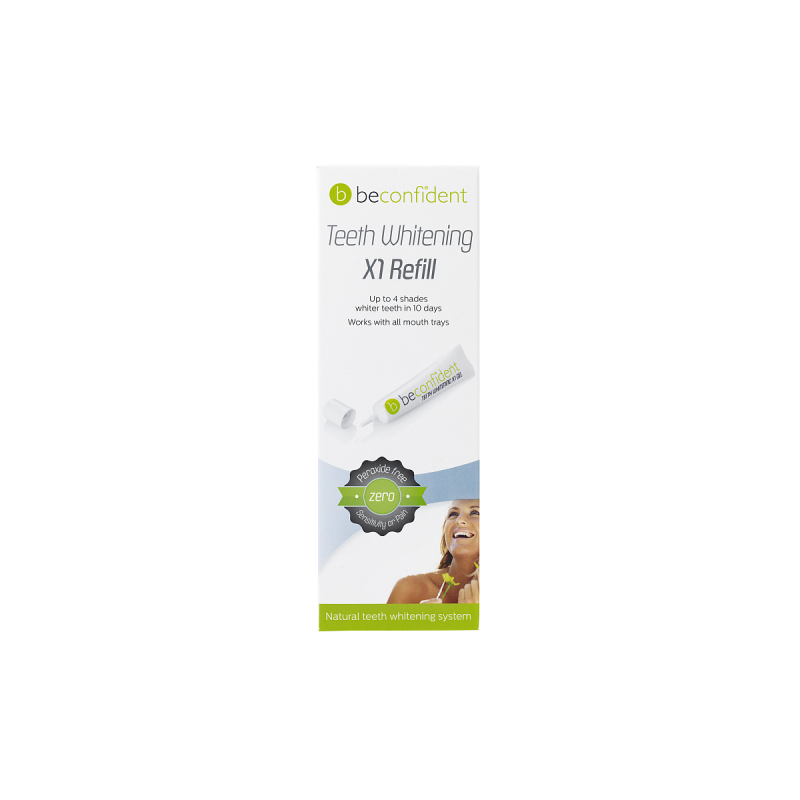 Beconfident X1 Refill to uzupełnienie żelu do wybielania zębów przeznaczone dla osób, które już korzystają z zestawu startowego X1. Żel oferuje skuteczne wybielanie bez nadtlenków, co gwarantuje piękny biały uśmiech bez ryzyka bólu dziąseł czy nadwrażliwości zębów. Jest to idealne rozwiązanie dla tych, którzy cenią sobie bezpieczeństwo i komfort podczas wybielania zębów.