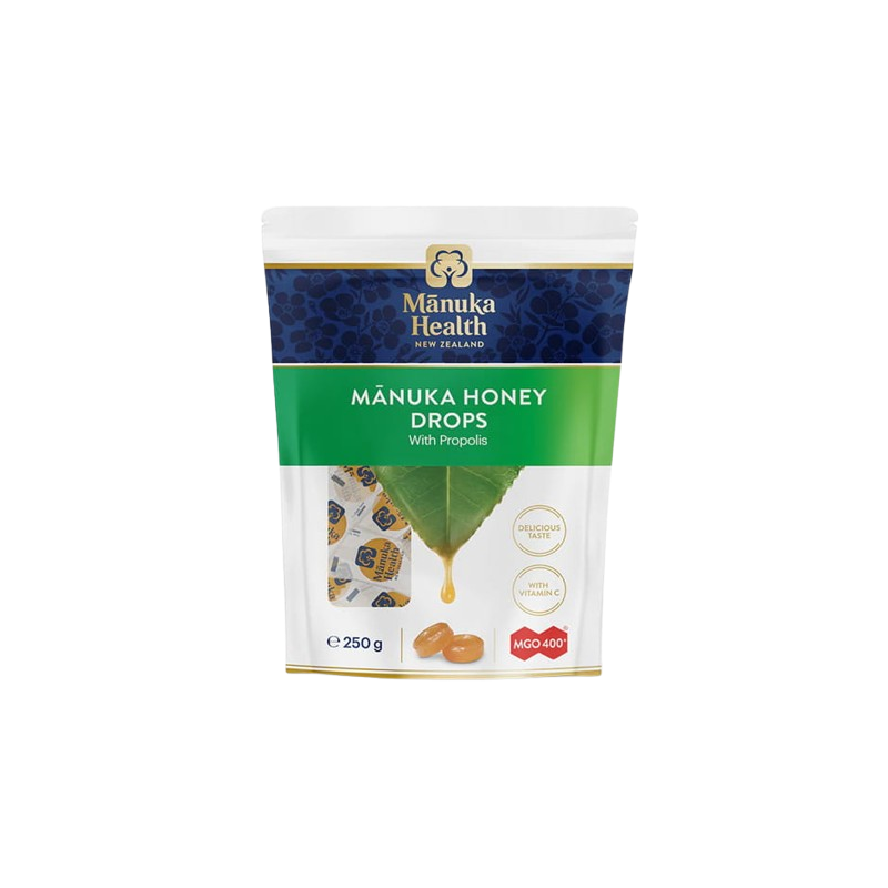 MANUKA HEALTH Cukierki z Miodem Manuka MGO™ 400+, Propolisem i witaminą C suplement diety (255 g)