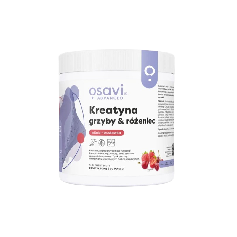 OSAVI Kreatyna, grzyby & różeniec, smak wiśnia z truskawką (300 g)