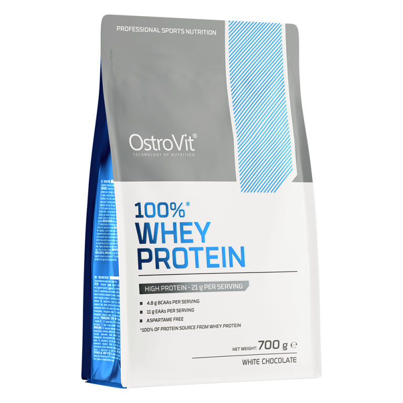 OstroVit 100% Whey Protein to suplement diety, który stanowi źródło koncentratu białka serwatki, zawierającego aż 70% wysokiej jakości protein. To preparat, który dostarcza do organizmu aminokwasy rozgałęzione BCAA, a także niezbędne aminokwasy egzogenne EAA. To niskotłuszczowy produkt, dostępny w postaci proszku w różnych wariantach smakowych, który został stworzony z myślą o sportowcach i osobach, którym zależy na uzupełnieniu codziennej diety w cenny makroskładnik.