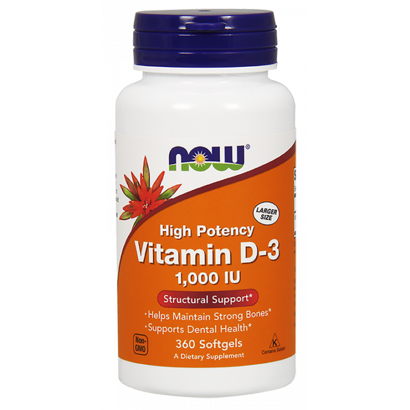 NOW FOODS Witamina D3 1000 IU (360 kaps.)